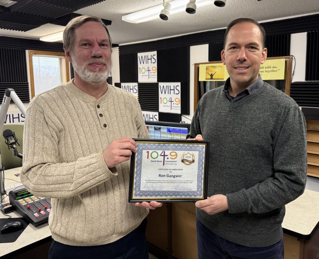 Long-time Enfield Resident Ron Gangwer, WIHS Program Director and Morning Host, recently celebrated his 25th anniversary at the station. Ron grew up in Pennsylvania, Kentucky and Vermont. After graduating from Pensacola Christian College with a Bachelor’s Degree in Bible and Education, he served as a sixth-grade teacher and then as the school administrator at a Christian academy in Massachusetts. He joined WIHS in February of 2001. Congratulations, Ron! You are greatly appreciated!